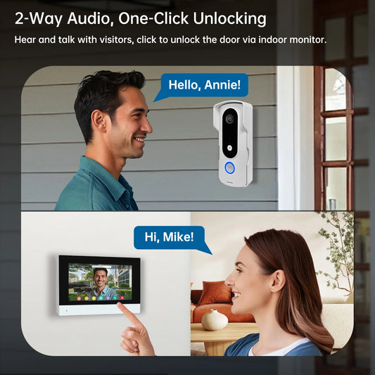 Draadloze deurbel met video - Elegant design met 7" scherm voor ultieme veiligheid