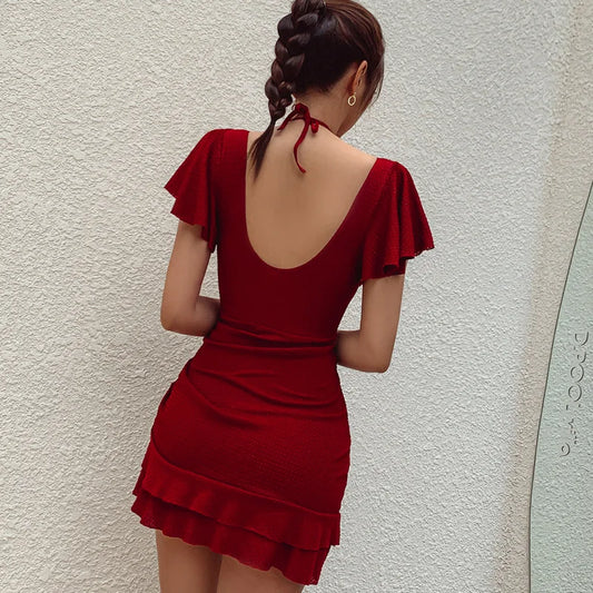 Elegante zwarte zwemjurk met speelse ruffles voor dames
