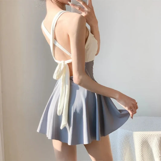 Elegante Zwemjurk Dames in Blauw en Wit