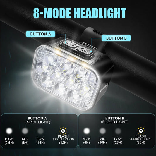 Fietslamp LED - Ultrahelder met 10000mAh voor veilige nachtritten