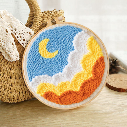 Borduurpakket - Beginners - Punch Needle - Maan/Wolken