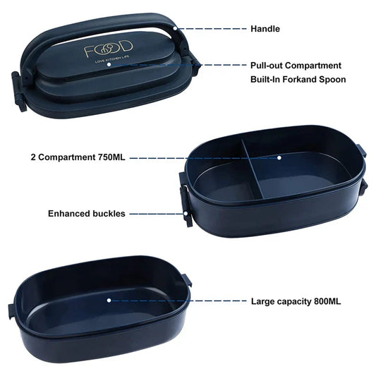 Broodtrommel - Blauwe Vierkante Lunchbox met Dubbele Compartimenten voor Gezonde Maaltijden