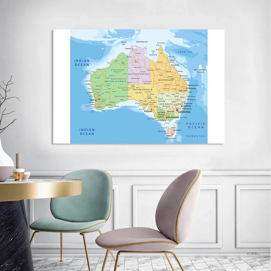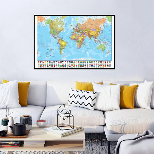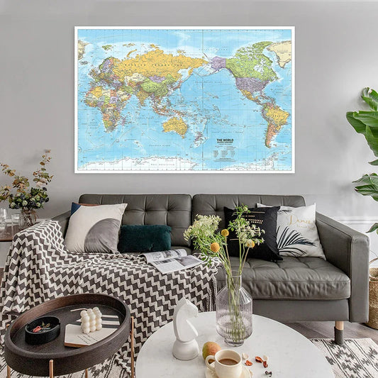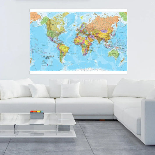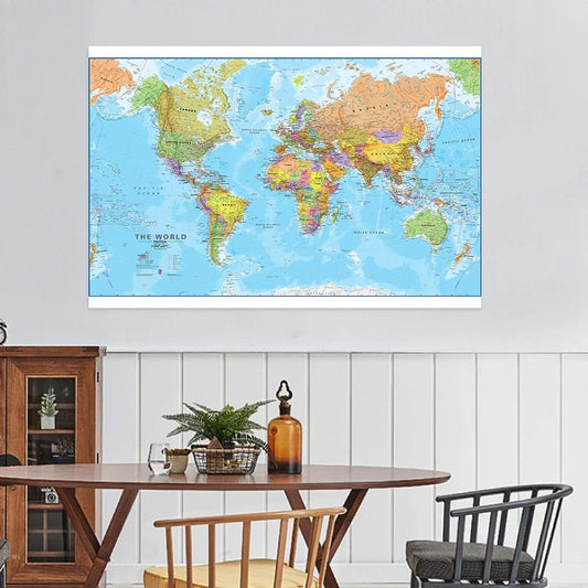 Wereldkaart - Kleurrijke Wanddecoratie met Gedetailleerde Geografie voor Avonturiers