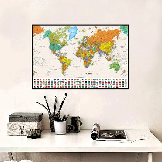 Wereldkaart - Kleurrijke Wanddecoratie voor Educatieve Inspiratie