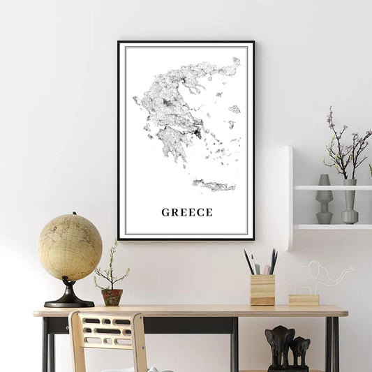 Wereldkaart - Stijlvolle Wanddecoratie met Gedetailleerde Kaarten van Athene en Griekenland