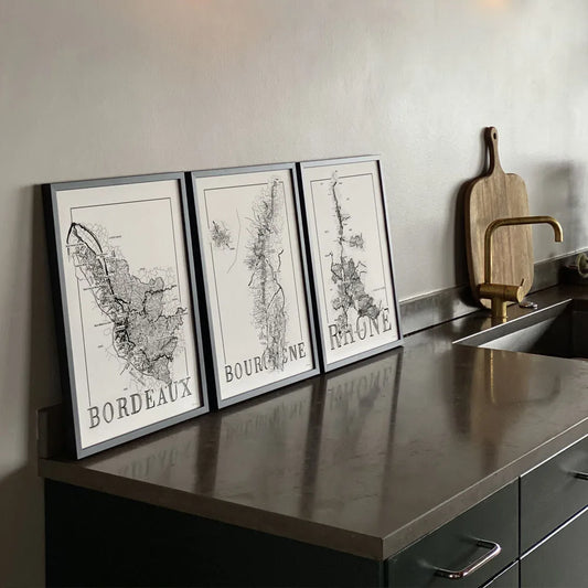 Wereldkaart - Set van 3 elegante wanddecoraties met Champagne, Bordeaux en Italië