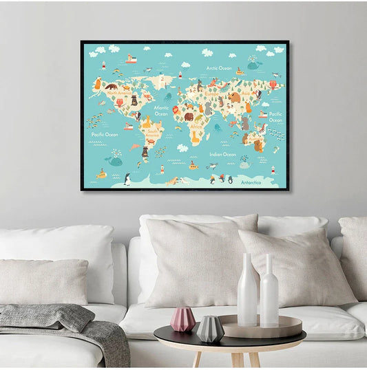 Wereldkaart - Speels Ontwerp met Dieren voor Kinderen