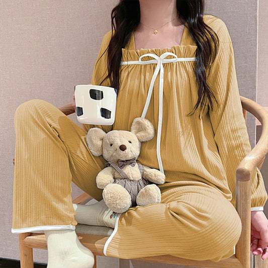 Dames Pyjama Set in Ontspannen Katoen – Stijlvol en Comfortabel voor de Winter