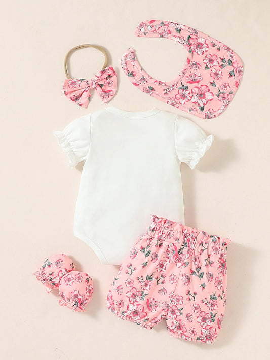 Schattige Babykleding Set – Bloemenprint Romper & Accessoires