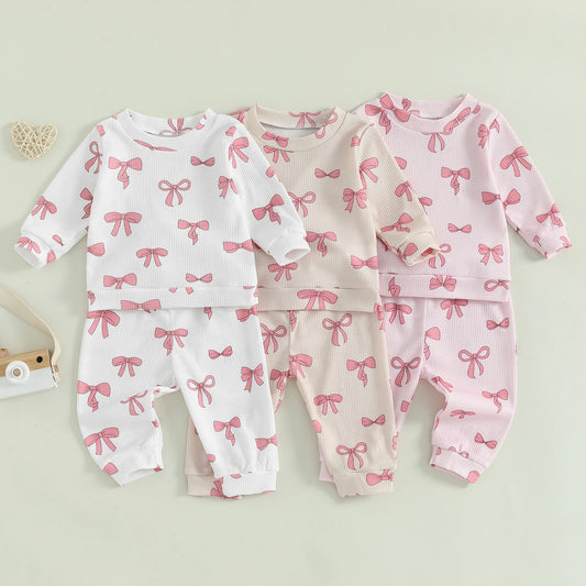 Schattige Meisjes Pyjama Set β Comfortabele Babykleding met Strikjes