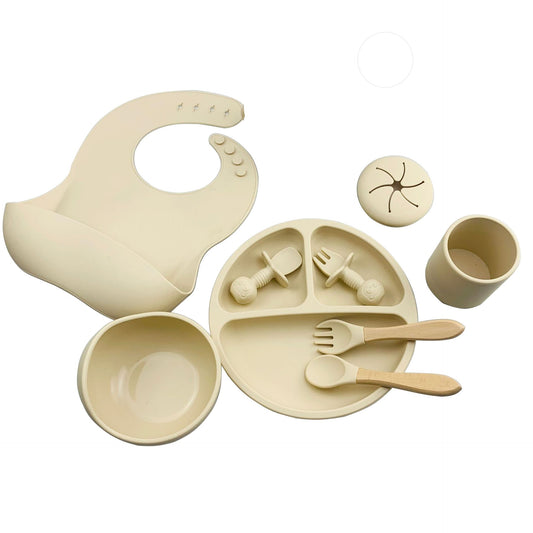MOLOO Kinderbestek set 11 Stuks Met Eigen Naam Beige Siliconen Kinderservies BPA-Vrij Eetset