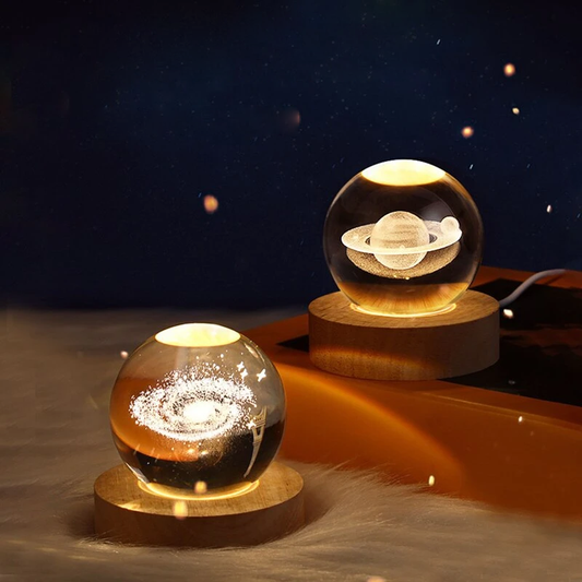 MOLOO Maanlamp Zonnestelsel - Tafellamp LED Verlichting - Houten Standaard - Moon Lamp Kinderkamer - Slaapkamer