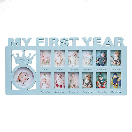 MOLOO Originele Kinderfotolijst Blauw - Mijn Eerste Jaar | Babyfotolijst | Uniek kraamcadeau | Persoonlijk geschenk voor ouders