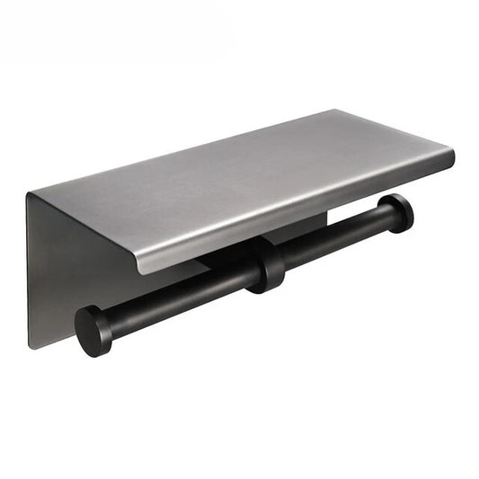 Wc Rolhouder - Toiletrolhouder met Plankje - 2 - Zwart