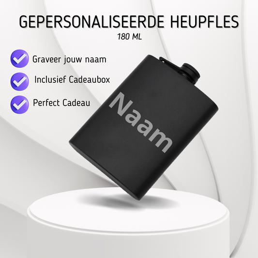 Heupfles Graveren - 180ML - Heupfles met Naam - Zwart