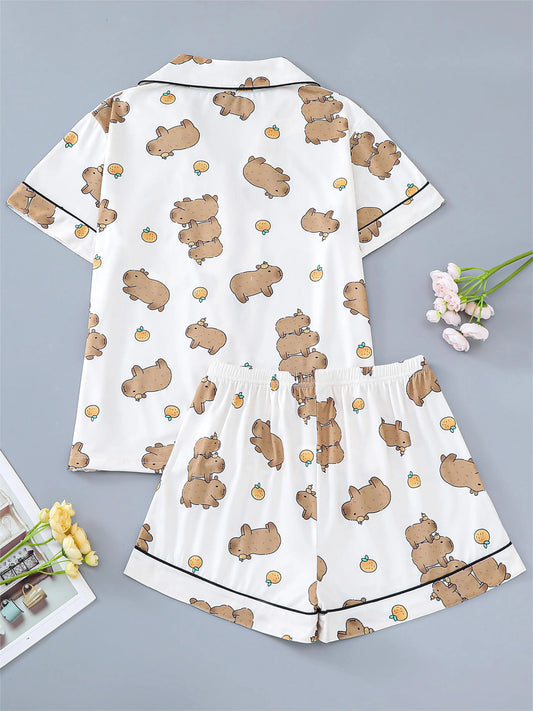 Dames Pyjama met Schattig Dierenpatroon – Comfortabel Katoen en Stijlvol Ontwerp