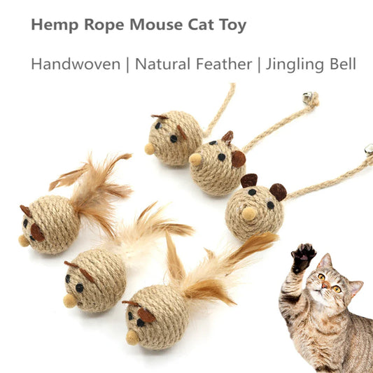 Kattenspeeltjes - Schattige jute muizen met belletjes voor uren speelplezier