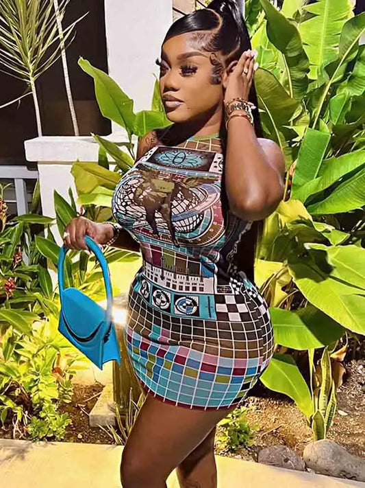 Trendy Bodycon Mini Jurk met Abstract Design – Dames Mode