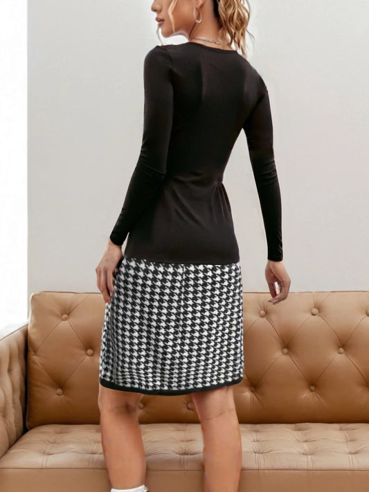 Chique Zwart-Witte Jurk met Houndstooth Print – Stijlvol & Elegant 🖤