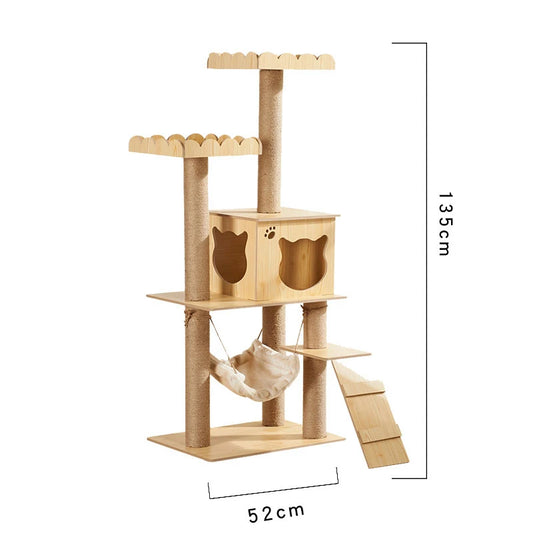 Kattenpaal design - Modern houten krabpaal met speelelementen voor Maine Coon