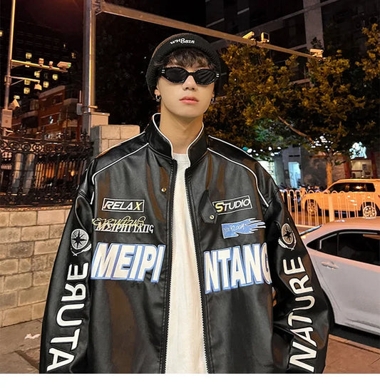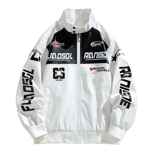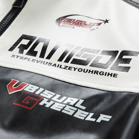 Leren jas heren - Zwart met unieke raceprint voor stoere uitstraling