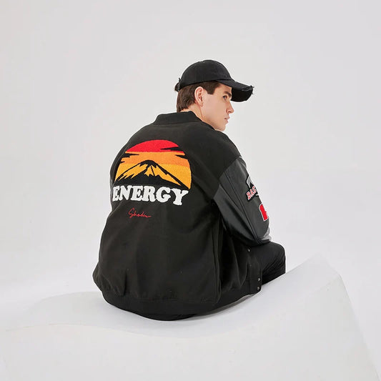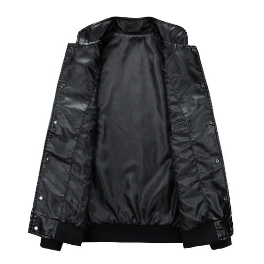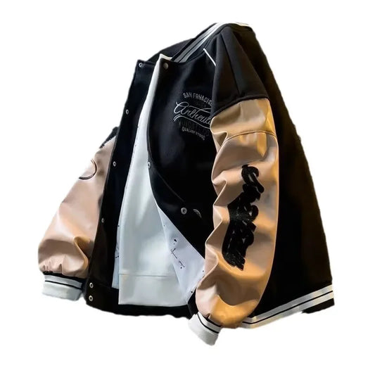 Leren jassen heren - Zwarte varsity stijl met statement print voor opvallende stijl