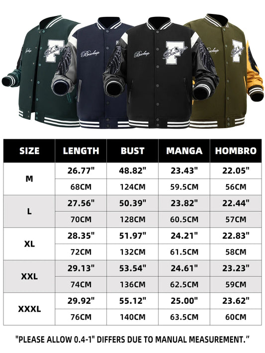 Leren jas heren - varsity stijl met vleugelmotief voor een unieke uitstraling