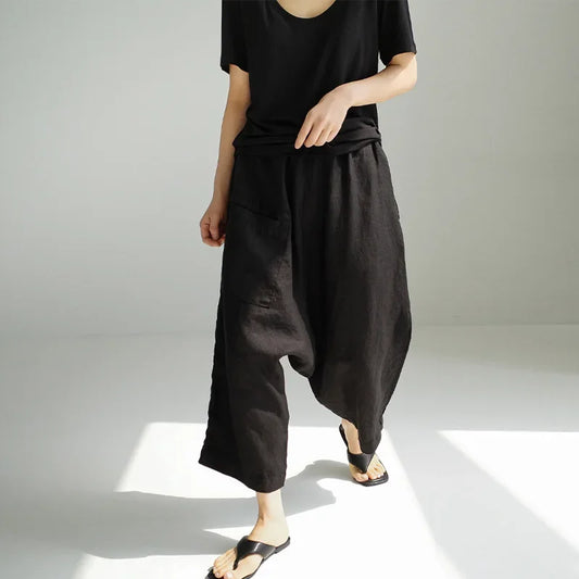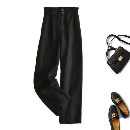 Linnen broek dames - Zwart met wijde pijpen voor ultiem comfort