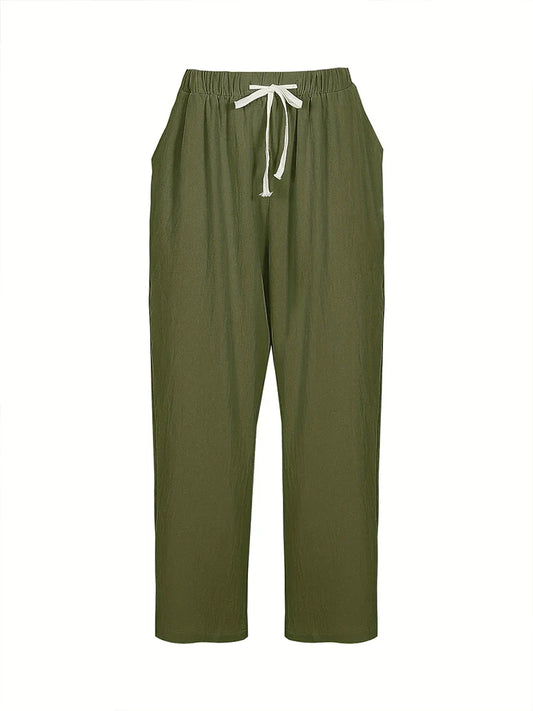 Linnen broek dames - Olijfgroene casual elegantie voor zomerse ontspanning