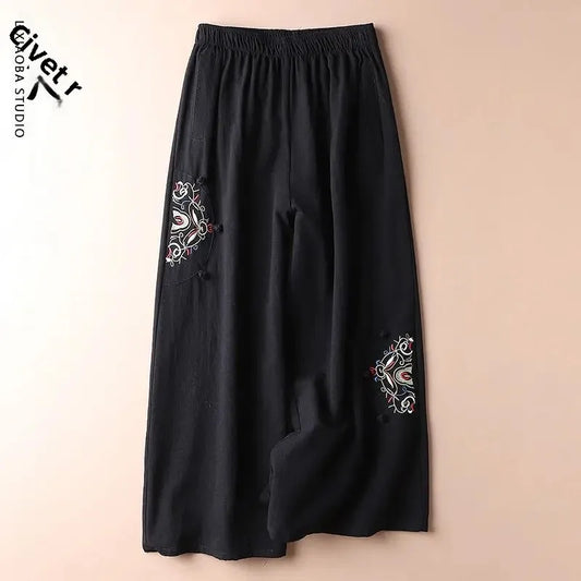 Linnen broek dames - Elegante borduursels voor zomerse elegantie