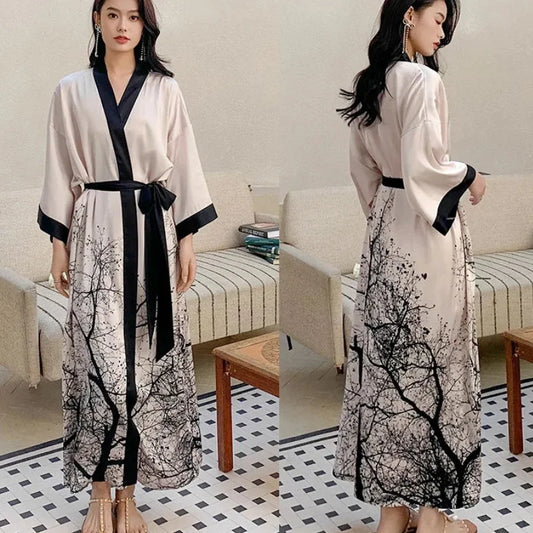 Ochtendjas dames katoen - Elegante boomprint voor ontspannen ochtenden
