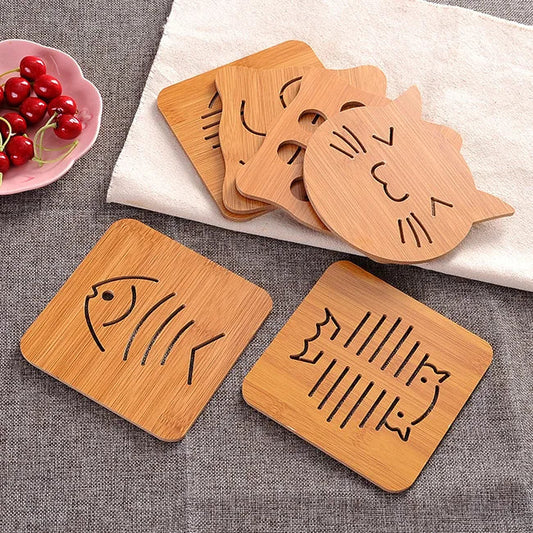 Onderzetters pannen - Hittebestendige bamboe set met schattige dierenmotieven