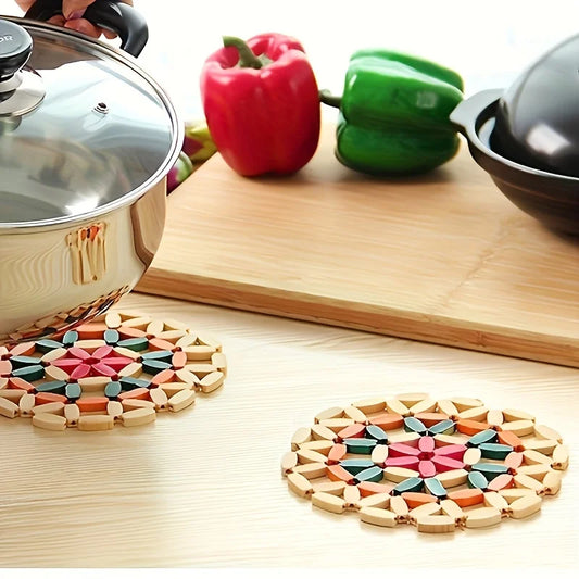 Onderzetters pannen - Kleurrijke houten bloemdesigns voor hittebestendig gebruik