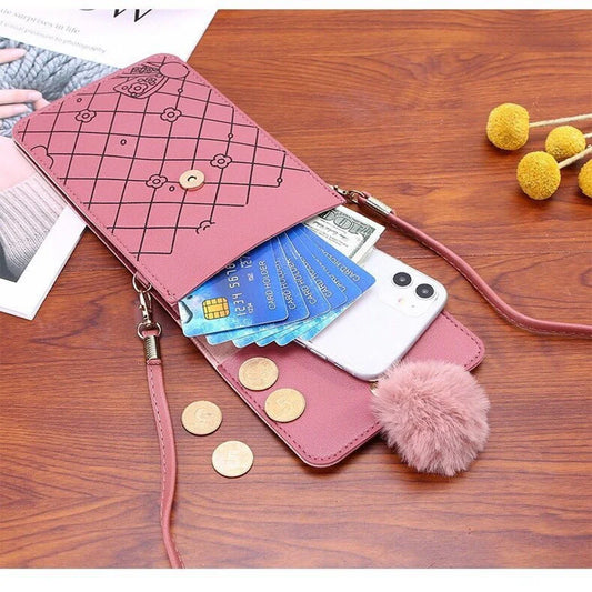 Portemonnee dames - Schattige kattenprint met pluche balletje voor stijlvolle opslag