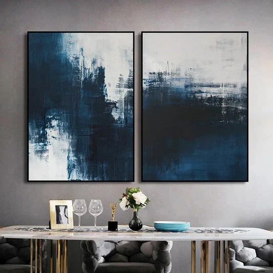 Posters - Zes abstracte kunstwerken in diepblauw voor een stijlvolle woonkamer