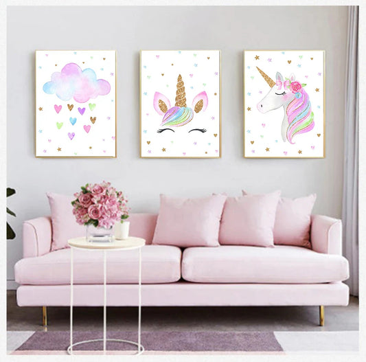 Posters - Magische eenhoorn en regenboog set voor kinderkamer