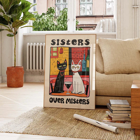 Posters - Kleurrijke en Humorvolle Kattenillustraties voor een Glimlach