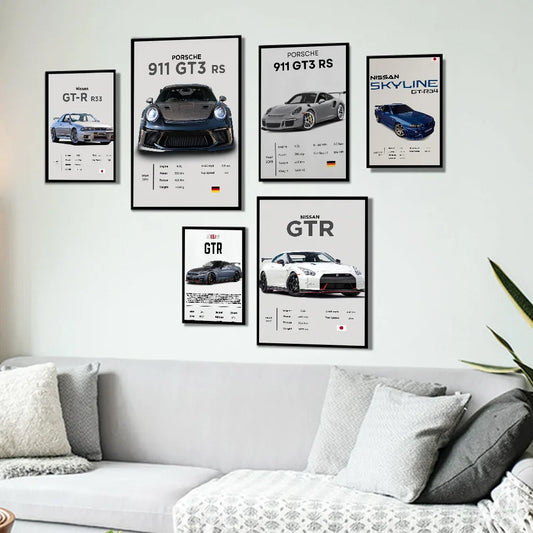 Posters - Auto Iconen met Gedetailleerde Specificaties voor Autoliefhebbers