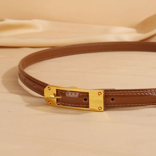 Riem dames - Elegante bruine leren riem met gouden gesp voor stijlvolle accentuering