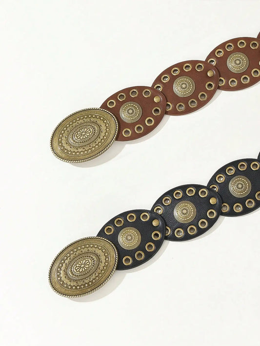 Riem dames - Vintage leren riem met ornament gesp voor stijlvolle accenten