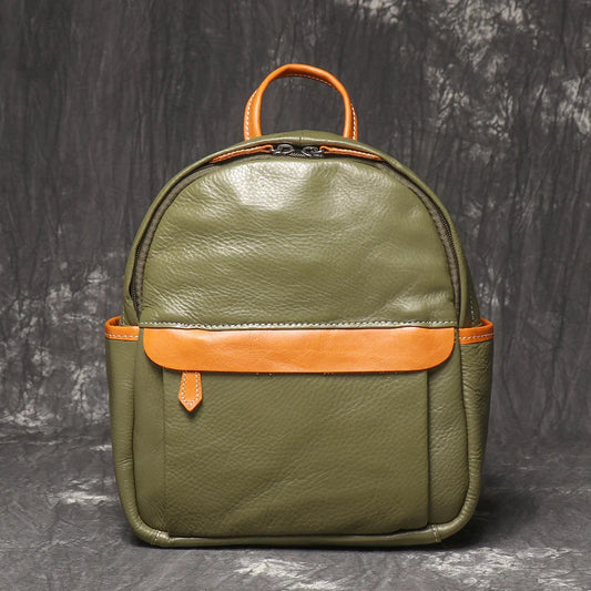 Schooltassen jongens - Groene leren rugzak met oranje accenten voor een stoere look