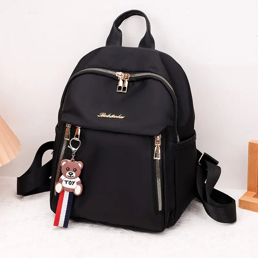 Schooltassen - Zwarte stijlvolle rugzak met schattige beer hanger voor een unieke look