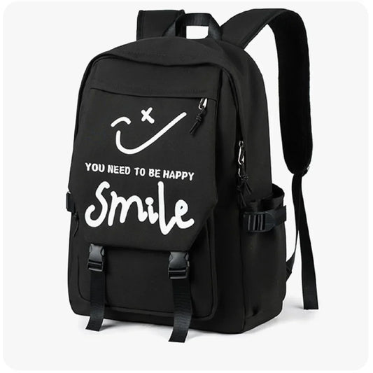 Schooltassen - Zwarte schooltas met opbeurende smiley print voor een vrolijke schooldag