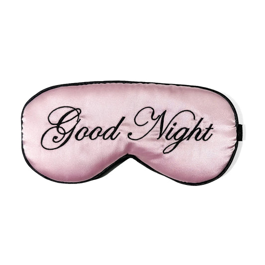 slaapmasker - roze met 'Good Night' borduursel voor diepe slaap