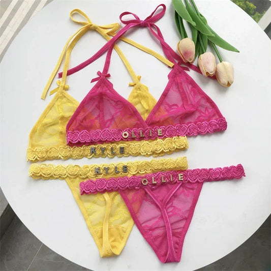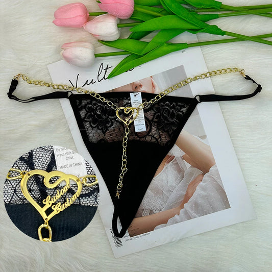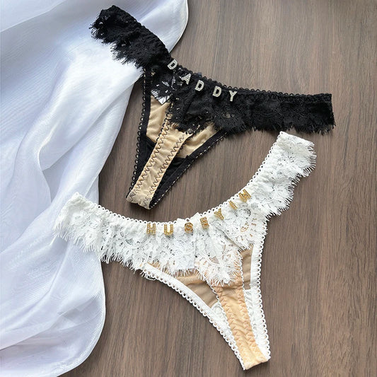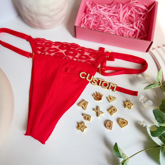 Sexy Lips Custom Name Lace Thong Panties for Women Adjustable Underwear Detachable DIY letter Personality Valentine's Day Gift