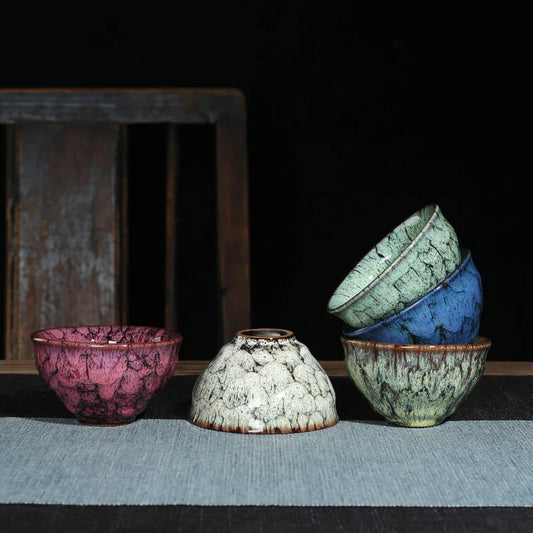 Theewaar - Set van 5 kunstzinnig geglazuurde theekommetjes voor een verfijnd theemoment