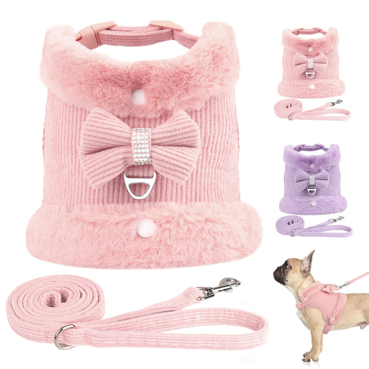 Tuigje honden - Roze ribfluweel met elegante strik voor stijlvolle uitstapjes