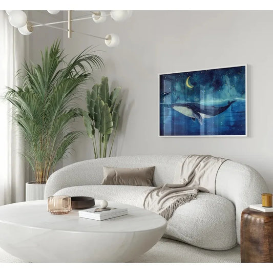 Decoratie woonkamer accessoires - Magische nachtelijke zee met walvissen en maan voor serene sfeer