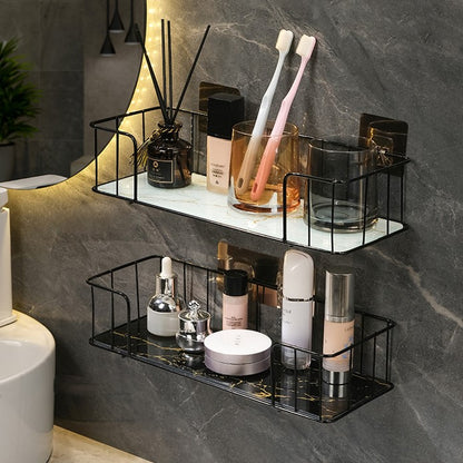 Oplossing: Doucherek Zwart/Wit Ons trendy badkamerrek biedt stijlvolle opbergruimte zonder gedoe met boren. Plaats het waar je wilt voor een georganiseerde en chique badkamer.